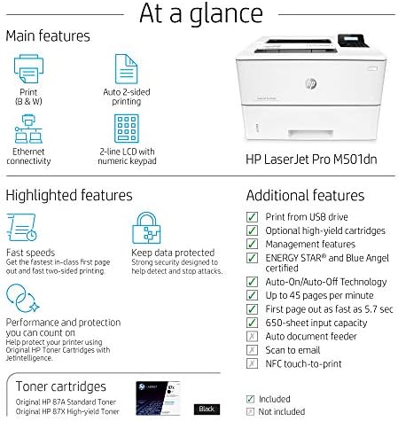 HP LaserJet Pro M501dn Duplex Printer with One-Year, Next-Business Day, Onsite Warranty (J8H61A) : Office Products