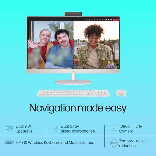 Features: Keyboard: HP 710 White Wireless Keyboard and Mouse Combo, Camera: HP True Vision 1080p FHD IR tilt privacy camera with temporal noise reduction and integrated dual array digital microphones, Wireless: Realtek RTL8852BE Wi-Fi 6 (2×2) and Bluetooth 5.3 wireless card (supporting gigabit data rate), Audio: Dual 5 W speakers