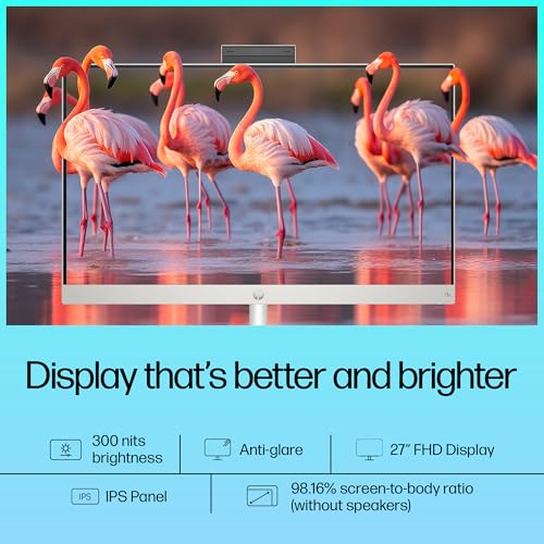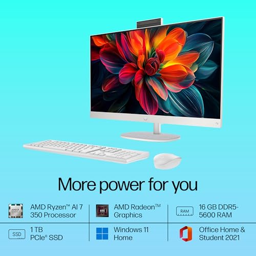 HP Next Gen AI AIO, AMD Ryzen AI 7 350, 50 Tops,(16GB DDR5,1TB SSD) IPS, 300 nits, Anti-Glare, 27inch(68.6cm) FHD, Win 11, Office24, Shell White, 11.9kg, FHD Camera w/Privacy shuttter, 27-ct2073in