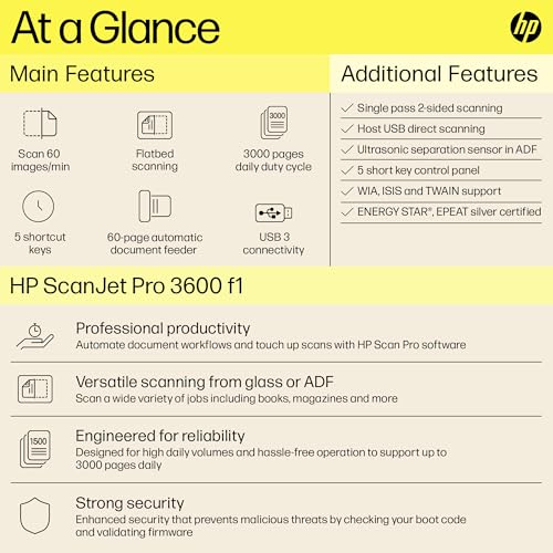 HP ScanJet Pro 3600 f1 Professional Scanner, ADF, CIS scanning Technology, Flatbed (20G06A)