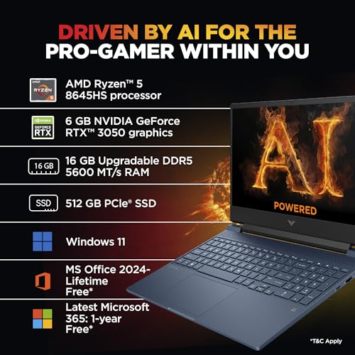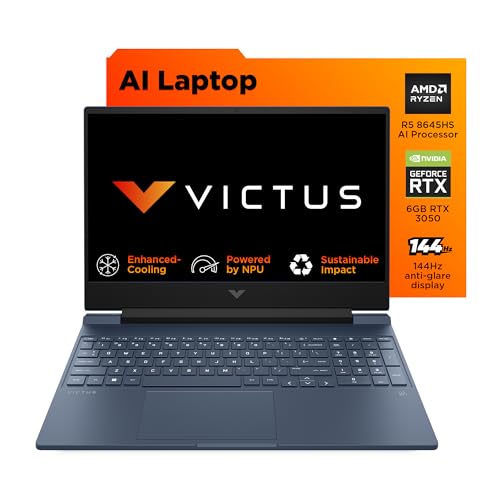 HP Victus, AMD Ryzen 5 8645HS, 6GB RTX 3050 Gaming Laptop (16GB DDR5, 512GB SSD),144Hz,300 nits,IPS, 15.6”/39.6cm, FHD, Win11, Office 24, Blue, 2,29kg, Backlit Kb,HD Camera, fb3012AX